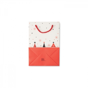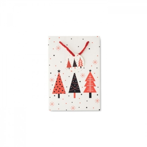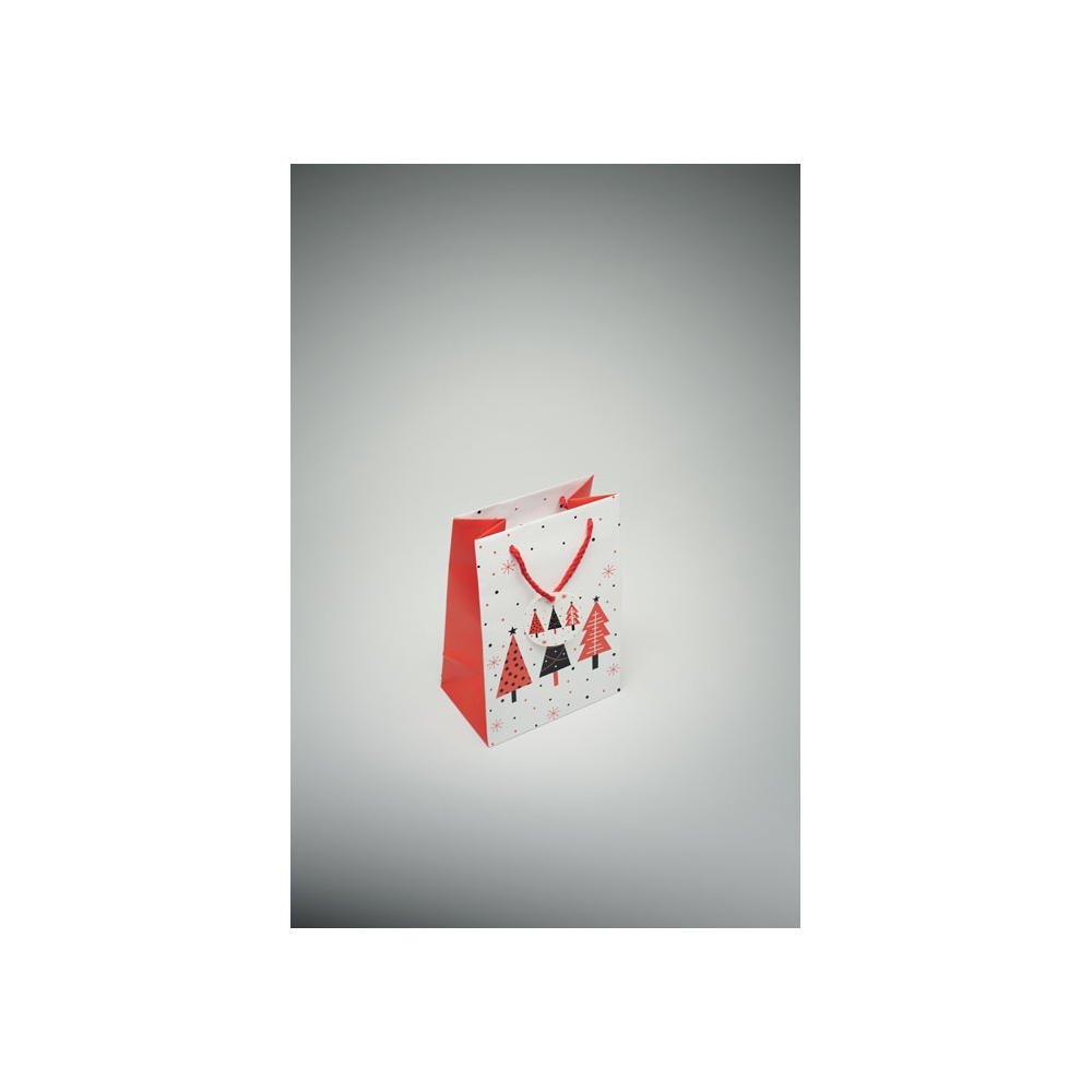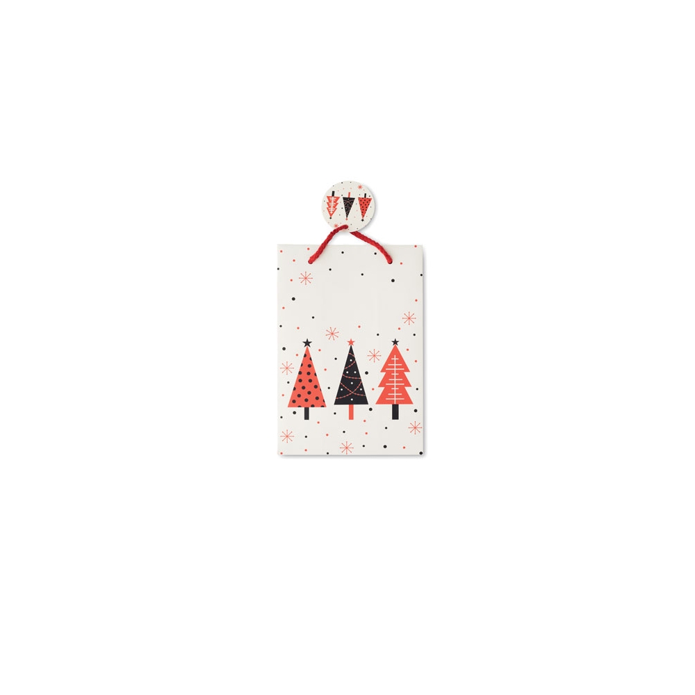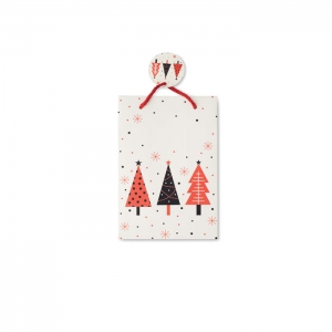 Artikel-Nr: OCBCX1561-06Kleine Geschenkpapiertüte mit weihnachtlichem Muster (30% recyceltes Papier) mit Anhänger. 128 g / m². FSC®-certified | FSC MIX, P5.3, FSC- C213206