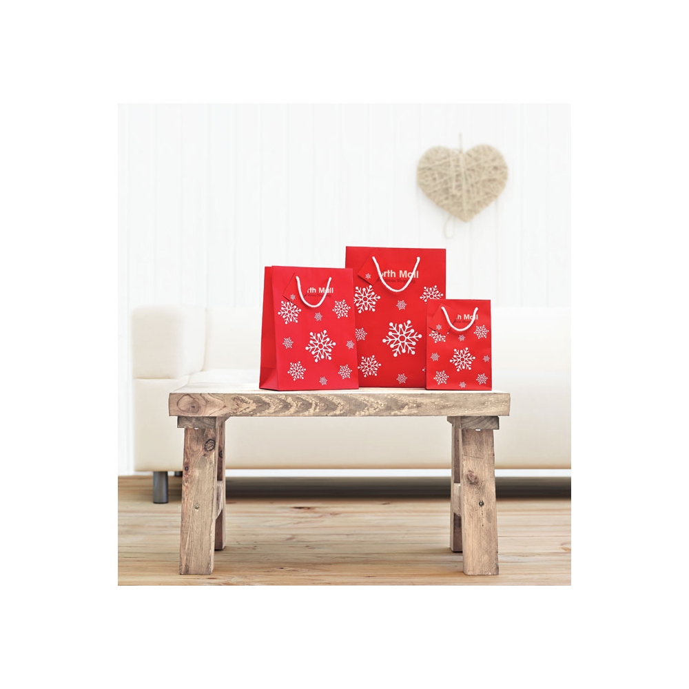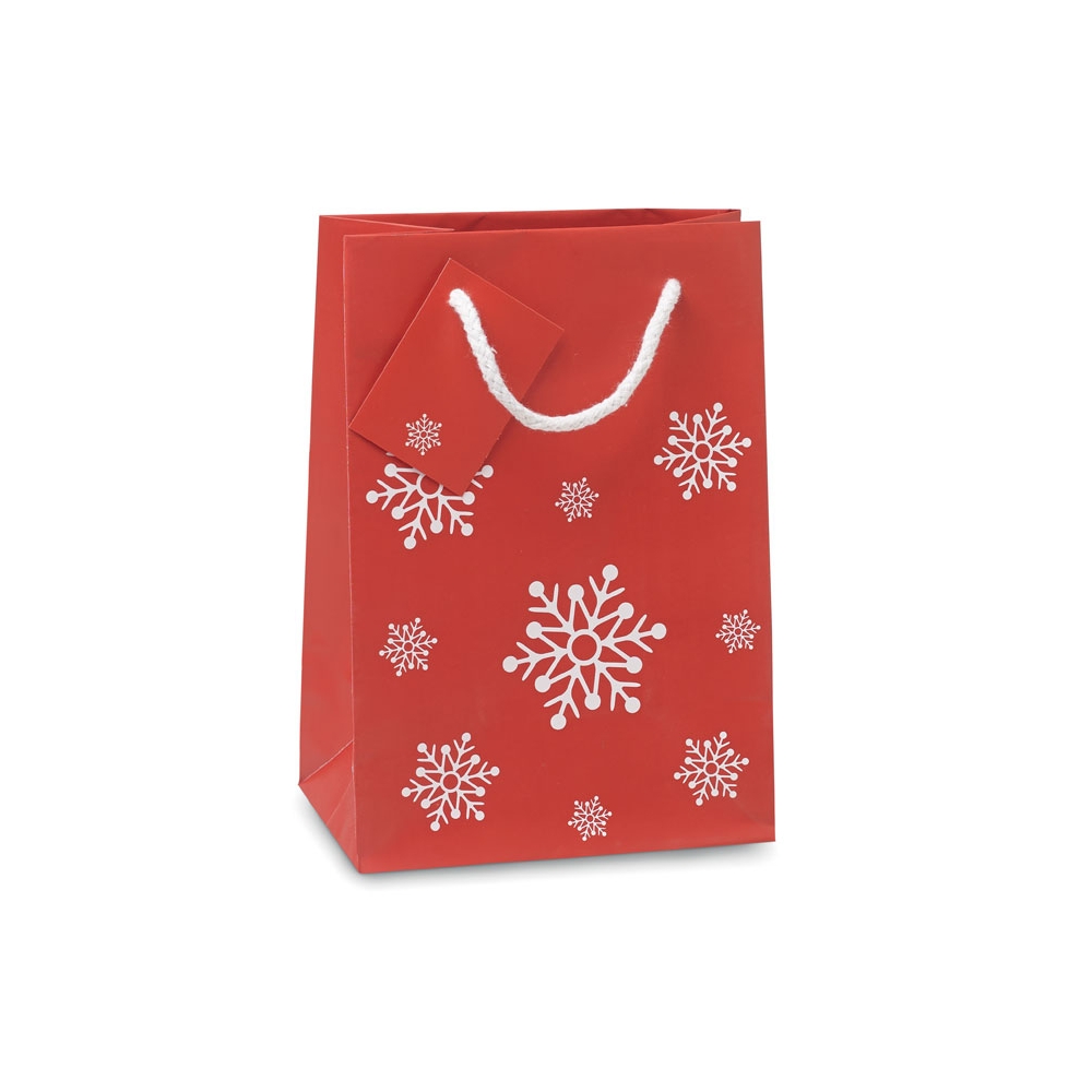 Artikel-Nr: OCBCX1413-05Elegante Geschenkpapiertüte mit Motiv ''Schneeflocke''. Inklusive Geschenkanhänger. Klein. FSC®-certified | FSC 100%, P5.3, FSC-C213206