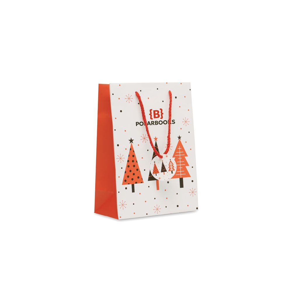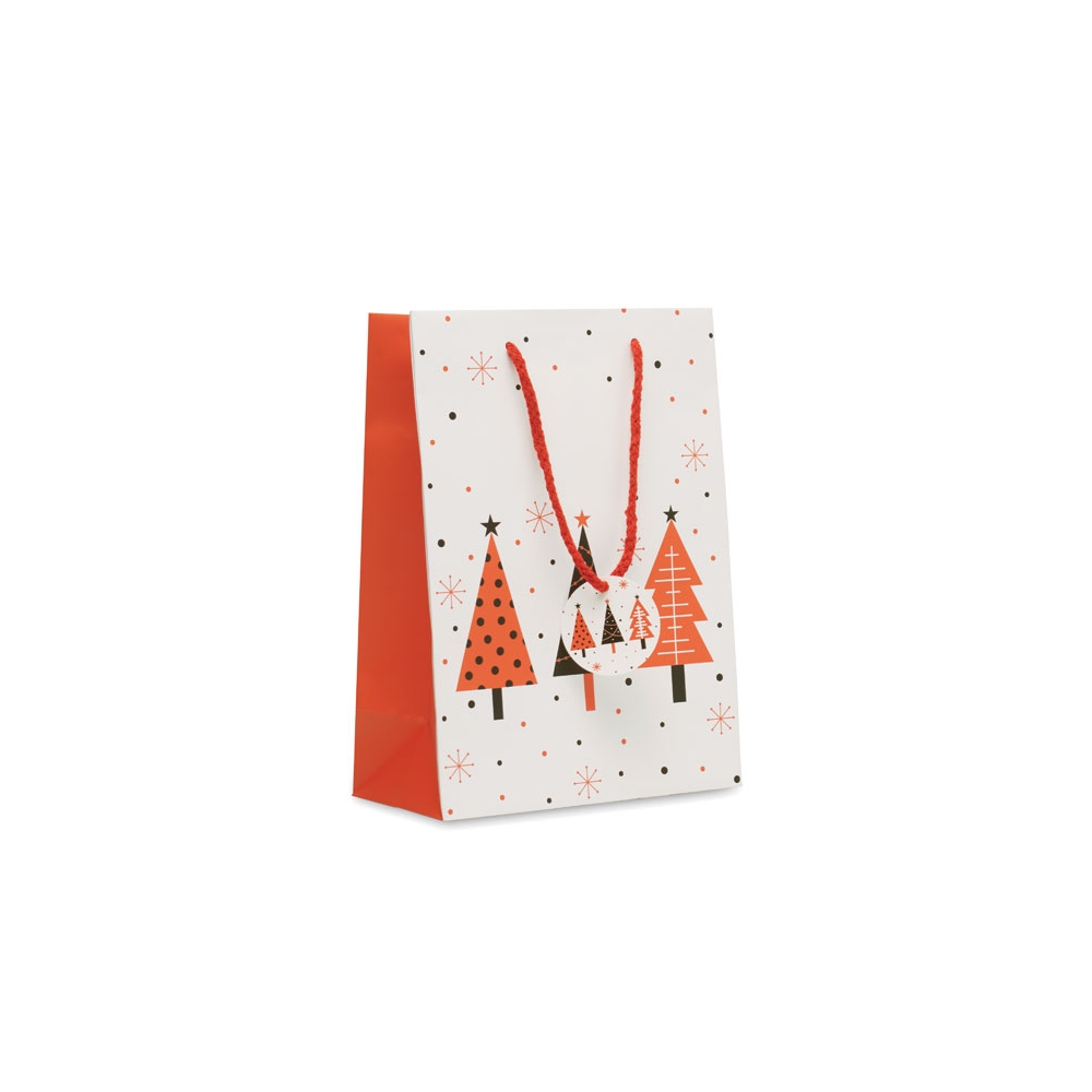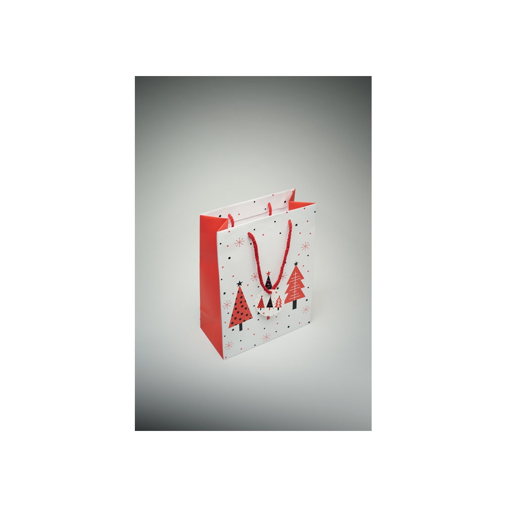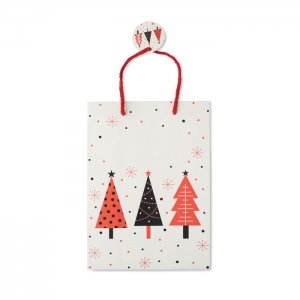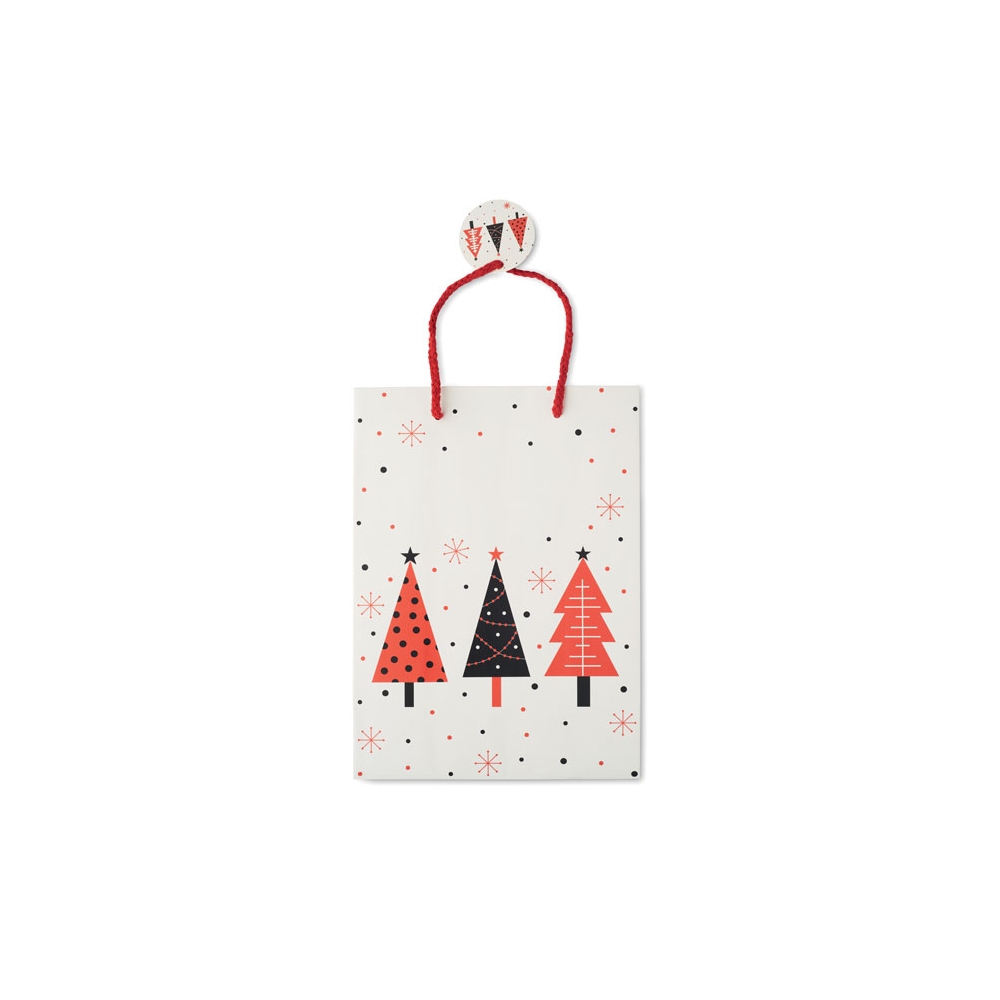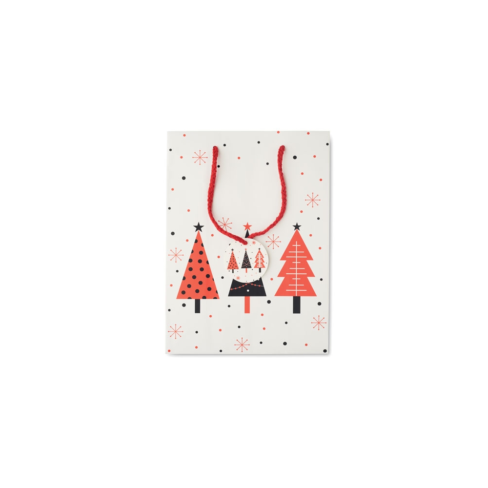Artikel-Nr: OCBCX1562-06Mittelgroße Geschenkpapiertüte mit weihnachtlichem Muster (30% recyceltes Papier) mit Anhänger. 150 g / m². FSC®-certified | FSC MIX, P5.3, FSC-C213206