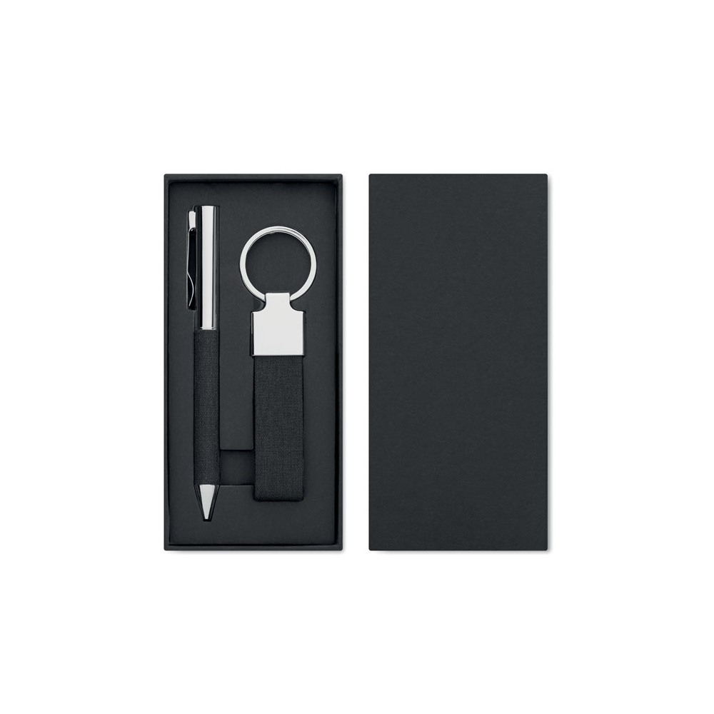 Artikel-Nr: OCBMO2333-032-teiliges Geschenkset in Geschenkbox. Inkl. Drehkugelschreiber aus Metall mit Details aus RPET-Polyester und RPET-Polyester-Schlüsselring. Blaue Tinte.