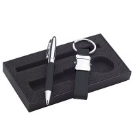 Artikel-Nr: 326620842000Das ideale Geschenk für jede Gelegenheit. Es beinhaltet einen Schlüsselring und einen Kugelschreiber mit schwarzer Tinte und silbernen Elementen. Fertig verpackt in schwarzer Geschenkbox.
