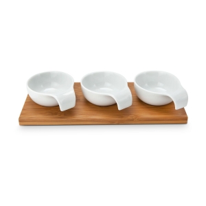 Artikel-Nr: ROP2K2028Dieses Bruschetta Trio besteht aus 3 leckeren Bruschetta Gewürzmischungen im Glas, einer 0,1 l Flasche Natives Olivenöl Extra, einer Rezeptkarte und einem ROMINOX® Servierbrett aus Bambus mit 3 hübschen Keramik-Servierschälchen. Einfach die jeweilige Mischung (45 g Arrabiata, 40 g al Olive und 35 g Verde) mit dem Öl anrühren, in die Schälchen füllen und mit Brot oder Baguette genießen. Hübsch verpackt in einer schwarzen Geschenkbox.