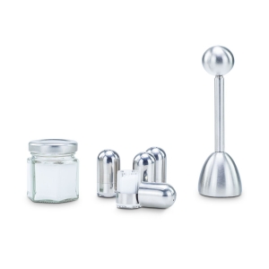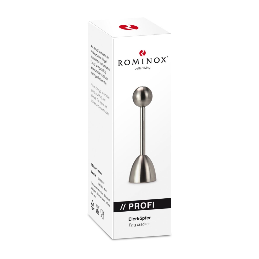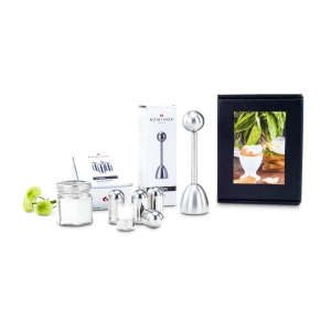 Artikel-Nr: ROP2K2179Mit dem charmanten Set "Frühstücks (dr) eierlei" beginnt der Start ins Wochenende mit Stil, Funktion und einem Augenzwinkern. Sie erhalten drei Dinge, die Sie für ein perfektes Frühstücksei brauchen: einen ROMINOX® Profi Eierköpfer, ein Glas mit feinem Meersalz (50 g) und ein Set aus vier eleganten ROMINOX® Minisalzstreuern. Sie brauchen nur noch ein perfekt gekochtes Ei. Die Salzstreuer haben eine moderne glänzende Oberfläche aus Edelstahl, sind einfach zu befüllen und haben einen transparenten Boden für eine einfache und schnelle Füllstandprüfung. Füllen Sie einfach das mitgelieferte Meersalz ein, um es fein dosiert auf Ihrem Frühstücksei zu verteilen. Damit Sie dieses stilvoll öffnen können, sorgt der ROMINOX® Eierköpfer aus Edelstahl mit praktischer integrierter Feder für eine klare Schnittkante ganz ohne Schalenkrümel. Die Utensilien für Ihr perfektes Frühstücksei kommen verpackt in einer edlen schwarzen Geschenkbox mit stimmungsvollem Frühstücksei-Aufkleber, welcher das Präsent zu einer stilvollen Liebeserklärung an die wichtigste Mahlzeit des Tages macht.
