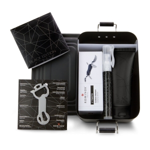 Artikel-Nr: ROP2K2073Das Must-Have für alle Outdoor-Begeisterten: diese schwarz-matte ROMINOX® Lunchbox ist gefüllt mit 1 ROMINOX® Keytool (Multifunktionswerkzeug für den Schlüsselbund mit 18+ Funktionen), 1 Outdoor-Besteck mit 6 Funktionen, 1 Handreinigungsspray (10 ml) und 1 Handcreme (75 ml). So haben Sie die praktischsten Dinge immer dabei - egal ob im Alltag, Büro oder auf Ihrer nächsten Reise!