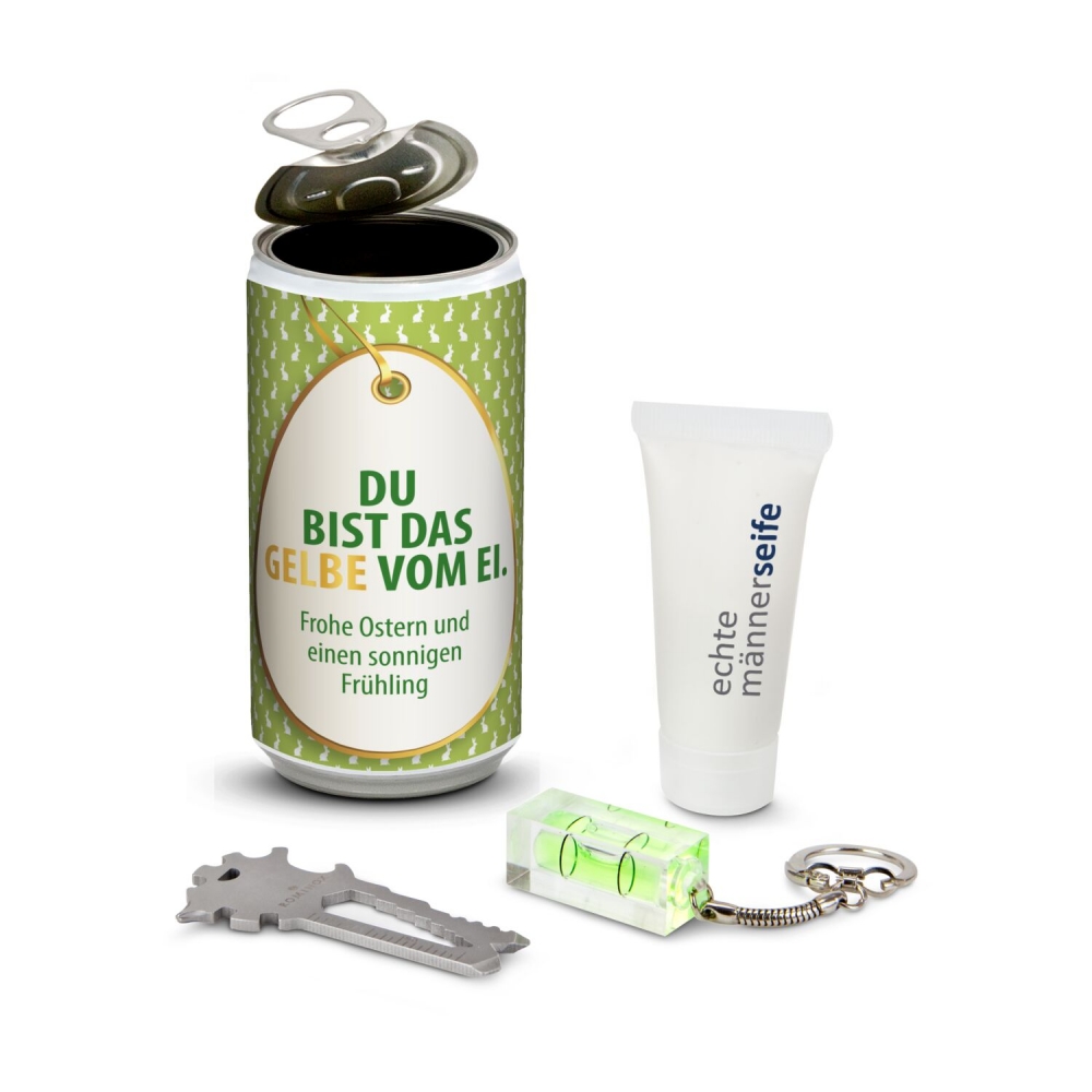 Artikel-Nr: ROP2K1195dWas nicht passt, wird passend gemacht - eine echte Männerdose! Ob für den Kunden, Kollegen, Mitarbeiter oder Kumpel: mit dieser Dose machen Sie jeden Mann glücklich. Passend für viele Gelegenheiten wie z. B. Ostern. Der Inhalt: ein kreatives ROMINOX® Multitool (sortiert) als Schlüsselanhänger mit 18+ Funktionen und Key Tool Funktionsbeschreibung (verschiedene Designs je nach Verfügbarkeit), eine Mini Wasserwaage und eine 20 ml Tube Duschgel. An die Werkzeuge, fertig, los!