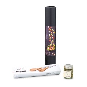 Artikel-Nr: ROP2K2187Mal wieder Lust auf einen knackigen Salat? Dann lassen Sie auch das Auge mitessen. Das Salatbesteck Moreno von ROMINOX® kombiniert seidig-weißes Finish mit warmem Buchenholz und setzt damit einen eleganten Akzent, der in jeder Schüssel zum Blickfang wird. Die beiliegende Kräuter-Dressing-Mischung (ca. 30 g) verfeinert Blattsalate im Handumdrehen mit aromatischem Geschmack, wie frisch aus dem eigenen Kräutergarten. Das Geschenkset kommt verpackt in einer edlen schwarzen Geschenkröhre, geschmückt mit einem Appetit machenden Salatmotivaufkleber. Auf Wunsch können Sie das Besteck gravieren und / oder den Aufkleber individuell in Ihrem Design gestalten.