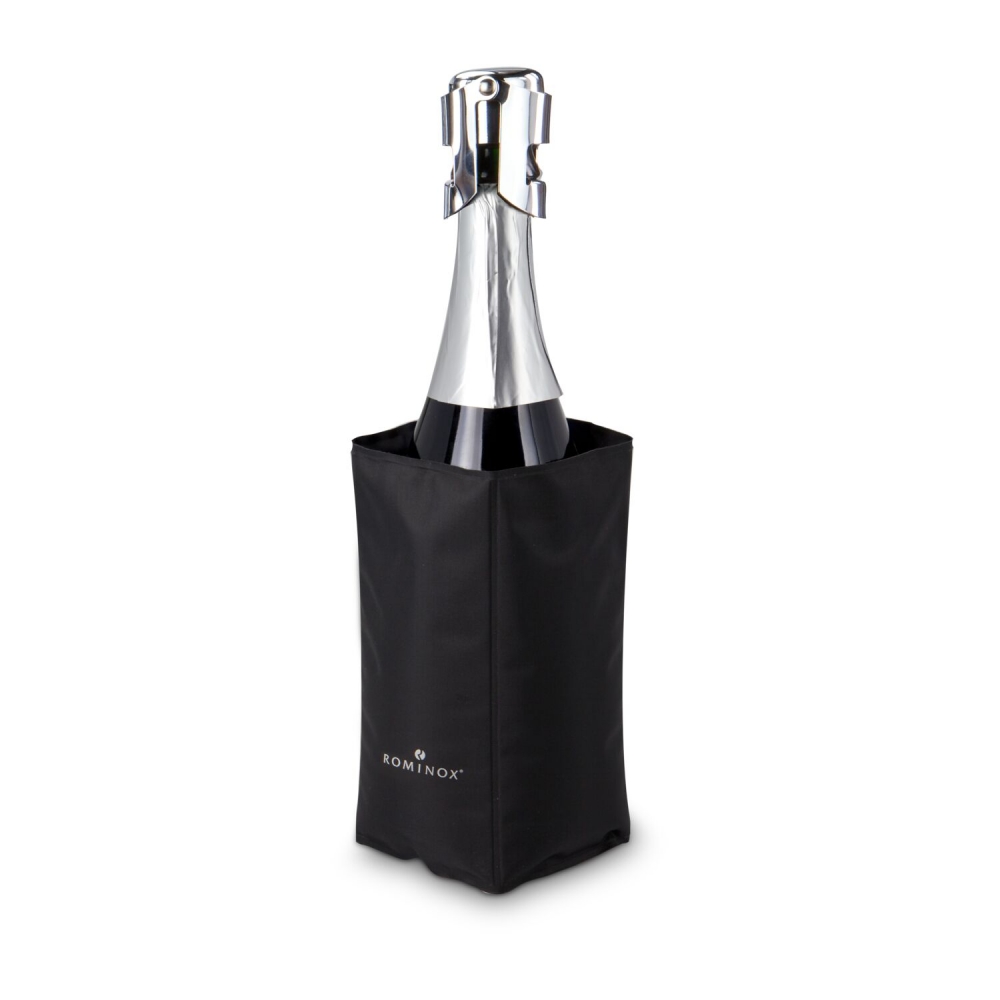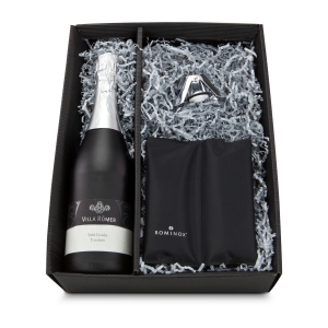 Artikel-Nr: ROP2K1050Ein edler Villa Römer Sekt (0,75 l) trocken in schwarz-matter Flasche, kombiniert mit schwarzer Kühlmanschette und Sektverschluss von ROMINOX®. In schwarzem Geschenkkarton.
