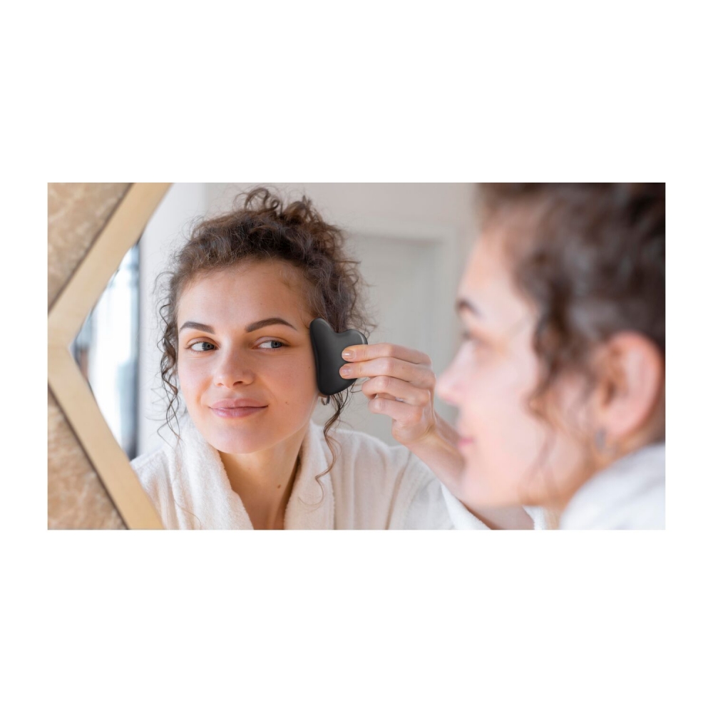 Artikel-Nr: ROP2K2160Schenken Sie Ihren Kunden, Mitarbeitern und Geschäftspartnern Zeit zur Entspannung. In dieser schönen, weißen Geschenkbox mit Stimmungsaufkleber befinden sich ein Handtuch (50 x 100 cm, Qualität: 470 g / m², Zertifiziert nach STANDARD 100 von OEKO-TEX®), eine Massagebürste mit Silikonnoppen für eine durchblutungsfördernde Kopfhautmassage und ein Gua Sha Massagestein aus schwarzem Obsidian. Er ist für die Verwendung der traditionell chinesischen Massage-Technik Gua Sha geeignet. Der herzförmige Stein mit seiner geschwungenen Form schmiegt sich perfekt an die entsprechenden Körper- und Gesichtsregionen an. Durch die Massage erzielen Sie eine straffende und abschwellende Wirkung. Gekühlt im Kühlschrank sorgt der Stein für einen echten Frischekick bei der Massage! So können Sie ganz leicht dem hektischen Alltag entfliehen.