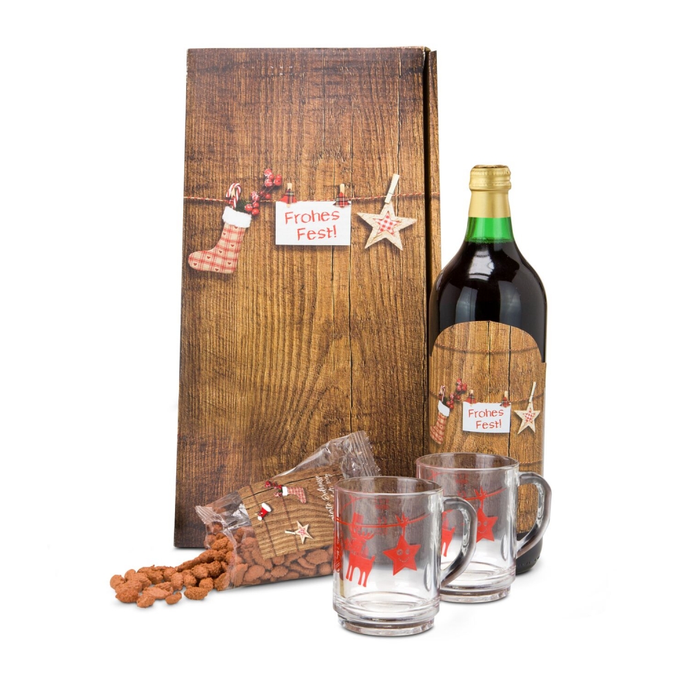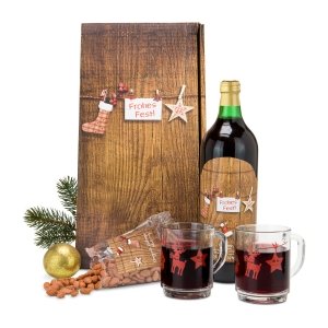 Artikel-Nr: ROP2K1052Ein eigener kleiner Weihnachtsmarkt für zu Hause: 1 Flasche traditioneller Nürnberger Glühwein (1 l), 2 Glühweintassen (je 200 ml) mit winterlichem Dekor und 100 g dragierte Erdnüsse mit weihnachtlichem Motiv. Genießen Sie den Duft und den Geschmack der vorweihnachtlichen Adventszeit in einer ruhigen Stunde zu Hause - ganz ohne Gedränge!