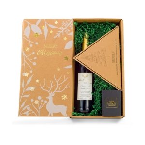 Artikel-Nr: ROP2K2176Dieses Set bereitet all Ihren Sinnen einen gemütlichen Abend in der Advents- oder Weihnachtszeit. Das Highlight ist ein ganz besonderer Weihnachtsbaum: er besteht aus natürlichem Holz, nadelt aber nicht und wird nicht weggeworfen. Das Aufbauen ist denkbar einfach: erst den Fuß drehen, dann den Stab hochziehen und die "Äste" des Baums ganz nach Wunsch ausrichten. Seine robuste Konstruktion ermöglicht es, ihn Jahr für Jahr wiederzuverwenden, was ihn zu einer nachhaltigen Alternative zum traditionellen Weihnachtsbaum macht - insbesondere auf dem Schreibtisch im Büro. Sie können den kompakten Baum mit Lichterketten oder Anhängern verschönern oder ihn nach Belieben anmalen, sodass er eine bunte Freude für Ihre Augen wird. Wenn die Advents- und Weihnachtszeit vorbei ist, wird er einfach wieder zusammengeklappt und in der Schublade verstaut. Ebenso erhalten Sie eine Flasche charaktervollen Rotwein Cabernet Sauvignon (0,75 l) in weiß-goldener Ausstattung, der mit dunklen Beeren und feiner Würze den Gaumen umschmeichelt. Für Ihren Geruchssinn ist noch eine luxuriöse schwarz-goldene ROMOSCENT® Sparkling Gold Duftkerze (ca. 110 g, Brenndauer ca. 20 Stunden) beigelegt. Sie verbreitet einen aromatischen Duft, der an den Genuss eines prickelnden Champagnergetränkes erinnert und ist daher die perfekte Kerze für besondere Momente. Sie kommt mit einem praktischen Holzdeckel und einer feinen Schleife. Die drei Artikel kommen gebettet auf tannengrünem Sizzle und in einem naturfarbenen Weihnachtskarton mit weißem Rentier und goldenem "Merry Christmas" Aufdruck. So bietet das Geschenkset Wein-Nachts-Baum ein ganz besonderes Weihnachts-Erlebnis für all Ihre Sinne. Der Baum und die Kerze können auf Wunsch graviert werden.