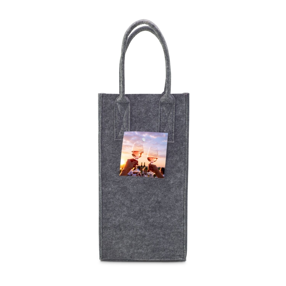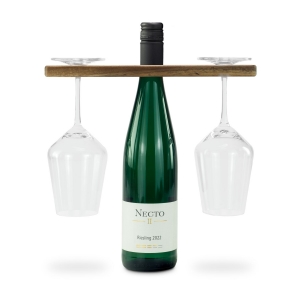 Artikel-Nr: ROP2K2170Genießen Sie einen gemütlichen Weinabend zu zweit. In dieser praktischen ROMINOX® Filztasche in modern meliertem Grauton (veganes Filz aus 100% recyceltem PET zertifiziert nach Global Recycling Standard) liefern wir eine Flasche erstklassigen Rieslingwein (0,75 l) und den ROMINOX® Weinglashalter Vinolino aus geöltem Akazienholz. Der Halter sorgt mit seinem schwungvoll abgerundeten Design für eine exklusive Präsentation von zwei Weißwein- oder Rotweingläsern direkt am Flaschenhals. So können Weinliebhaber den edlen Tropfen in stilvoller Zweisamkeit genießen. Ein Anhänger an der Tasche rundet das hochwertige Weinpräsent ab. Auf Wunsch auch mit individuellem Anhänger.