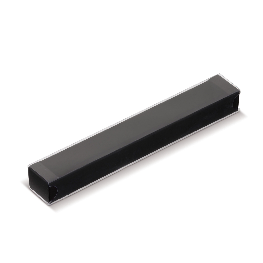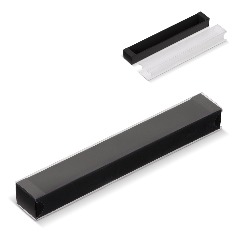 Artikel-Nr: ART83140N0002Schwarze Geschenkverpackung mit transparenter Schutzhülle für einen Kugelschreiber.