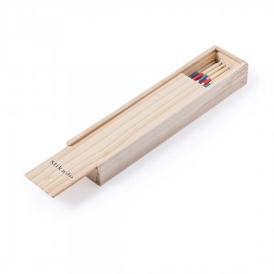 Artikel-Nr: KTO15718000000Klassisches Mikado-Geschicklichkeitsspiel mit 41 Holzstöcken. Präsentiert in einer Holzkiste mit Schiebedeckel.