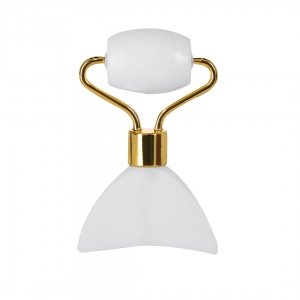 Artikel-Nr: KTO22465001000Hochwertige Gesichtsroller aus weißem Jadestein. Angenehmer Handmassager fürs Gesicht, mit einem Gesichtszylinder aus weichem, poliertem Stein und Spatel.