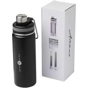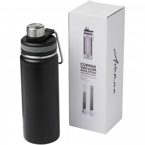Artikel-Nr: CPO10064400Doppelwandige Edelstahl-Vakuumkonstruktion mit Kupferisolierung, welche dafür sorgt, dass Ihr Getränk mindestens 12 Stunden lang heiß und 48 Stunden lang kalt bleibt. Die Konstruktion verhindert auch eine Kondensation an der Außenseite der Flasche. Ausgestattet mit einem Schraubverschluss und einem Edelstahldeckel mit einem praktischen Tragegriff. Konstruktion mit zwei Öffnungen für einfache Reinigung und Befüllung. Das Fassungsvermögen beträgt 590 ml. Präsentiert in einer Avenue-Geschenkschachtel.
