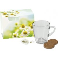 Artikel-Nr: 449013131Eine formschöne Tasse aus Glas, in der Gesundheit und Wellness wachsen kann. Einfach die Erdtabletten mit Wasser aufquellen lassen, die Kamille-Samen einstreuen und schon bald wächst die gesunde Pflanze. Die Kamille-Blüten sind hervorragend für einen wohltuenden Teeaufguss geeignet. Die umlaufende Banderole bietet im Standardmotiv viel Platz für Ihre Werbebotschaft ab 250 Stück. Eine individuelle Gestaltung ist ebenfalls ab 250 Stück möglich.