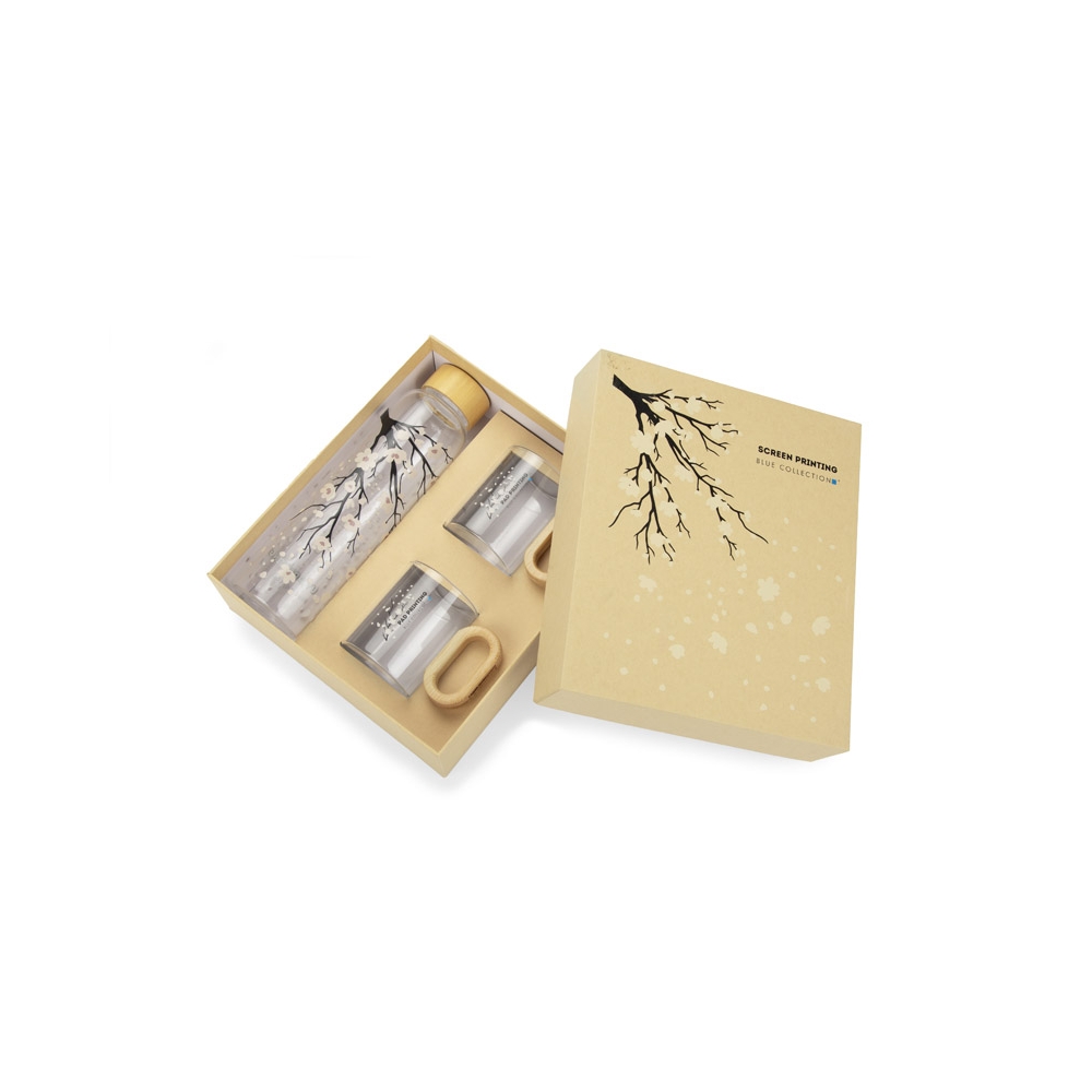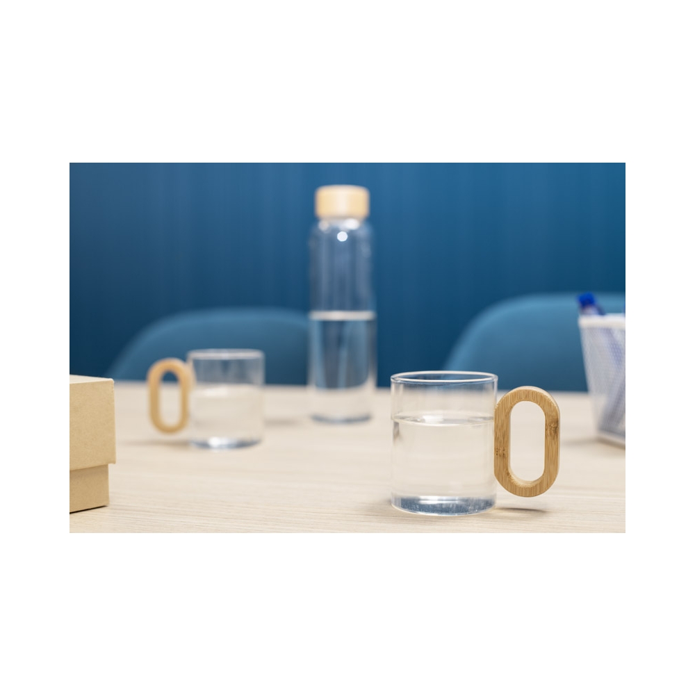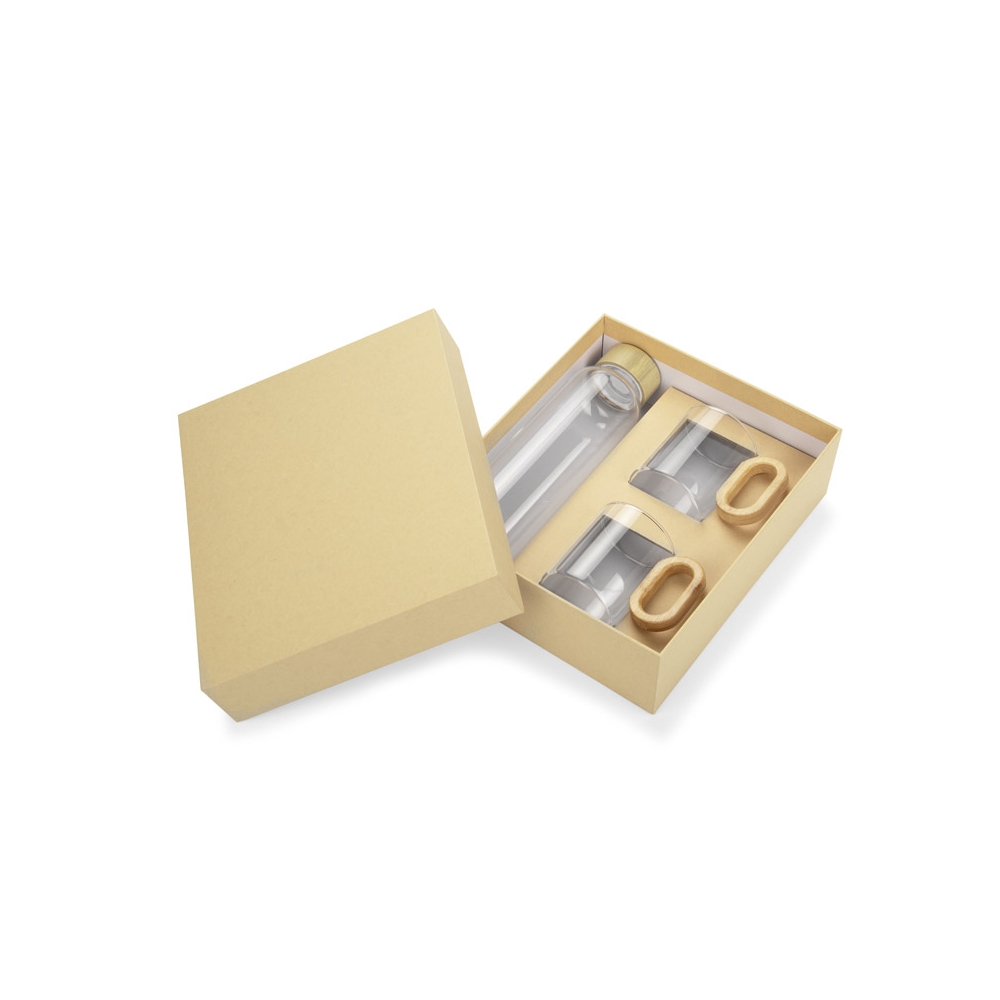 Artikel-Nr: ARD16060-19TRINKLA ist ein fertiges Geschenkset, das aus einer 500-ml-Glasflasche und zwei 200-ml-Gläsern besteht, verpackt in einer ästhetisch ansprechenden beigen Schachtel mit Verschluss. Die Flasche hat einen Bambusdeckel und die Gläser sind mit originellen Griffen aus natürlichem Bambus ausgestattet. Die harmonische Kombination aus transparentem Glas und von der Natur inspirierten Details verleiht dem Ganzen einen leichten und modernen Charakter. TRINKLA bewährt sich überall dort, wo es auf Stil und Funktionalität ankommt - in der Wellnessbranche, in der Gastronomie, bei Events oder als Geschenk für Geschäftspartner.
