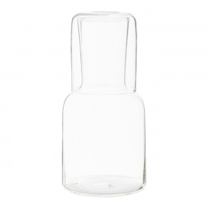 Artikel-Nr: AND812439-01TWasserkaraffe (Füllmenge: 800 ml) und Glas (Füllmenge: 300 ml) aus Borosilikatglas. Geeignet für kalte und warme Getränke, kann auch als Dekanterflasche verwendet werden. Verpackt in Kraftpapierbox.