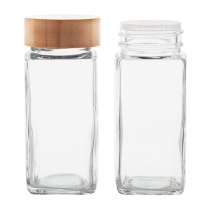 Artikel-Nr: AND8005672-teiliges Gewürzbehälterset aus Glas mit Bambusdeckeln. Füllmenge: 120 ml. Verpackt in Kraftpapierbox.