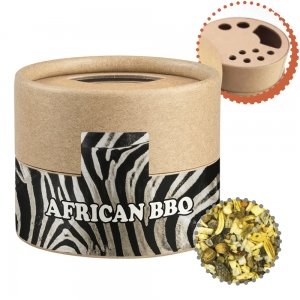 Artikel-Nr: FNM01867Kraftpapierstreuer Mini aus Papier. Werbeanbringung als Etikett in 4c individuell bedruckbar. Zutaten Gewürzmischung African BBQ: Meersalz, Fenchel, Pfeffer, Coriander, Knoblauch, Zwiebeln, Zimt, Anis, Ingwer, Cumin, Nelken, Chillies, Piment