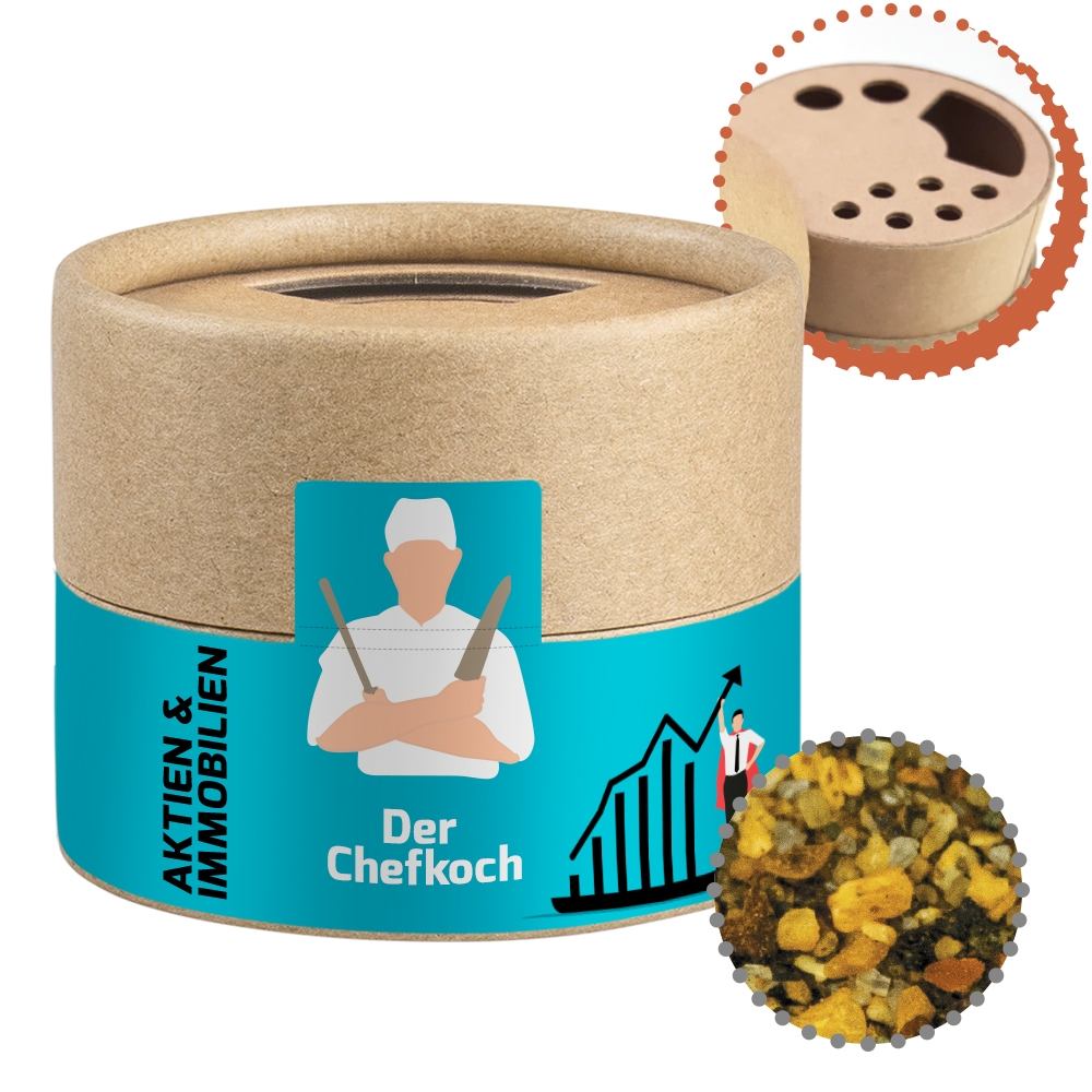 Artikel-Nr: FNM01872Kraftpapierstreuer Mini aus Papier. Werbeanbringung als Etikett in 4c individuell bedruckbar. Zutaten Gewürzmischung Steak Pfeffer: Pfeffer, Meersalz, Roh-Rohrzucker, Zwiebeln, Knoblauch, Chillies, Paprika, Liebstöckel, Rapsöl, Rauch