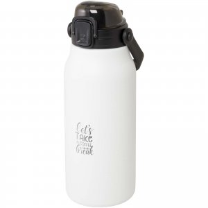 Artikel-Nr: CPO10078901Diese große RCS-zertifizierte Flasche aus recyceltem Edelstahl versorgt Sie stilvoll den ganzen Tag über mit Flüssigkeit. Die Kupfer-Vakuumisolierung hält Getränke mehrere Stunden lang heiß oder kalt, und mit dem klappbaren Griff lässt sie sich leicht transportieren. Die Flasche ist auslaufsicher und lässt sich per Knopfdruck leicht öffnen. Das Fassungsvermögen beträgt 1600 ml. Verpackt in einer Geschenkbox aus Recyclingkarton.