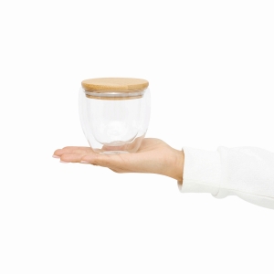 Artikel-Nr: INP56-0304450Glas BAMBOO ART S, doppelwandig: Bambusdeckel mit Silikon-Dichtring, transparent, temperaturbeständig, Füllmenge ca. 250 ml