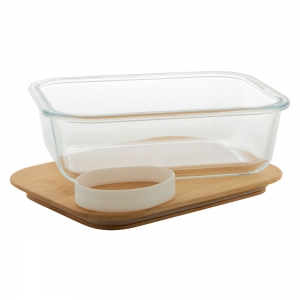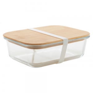 Artikel-Nr: AND800440Lunchbox aus Glas mit Deckel aus natürlichem Bambus und Silikonband. Füllmenge: 800 ml.