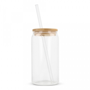 Glas mit Bambusdeckel & Strohhalm 450ml