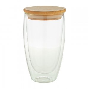Artikel-Nr: AND812426Doppelwandiger Thermobecher aus Borosilikatglas mit Bambusdeckel. Füllmenge: 420 ml. Einzeln in Kraftpapierbox.