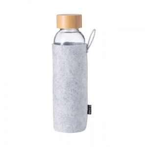 Artikel-Nr: AND733325-80Trinkflasche aus Glas mit Bambusdeckel und RPET-Filzbeutel. Füllmenge: 500 ml. Nicht für kohlensäurehaltige Getränke geeignet.