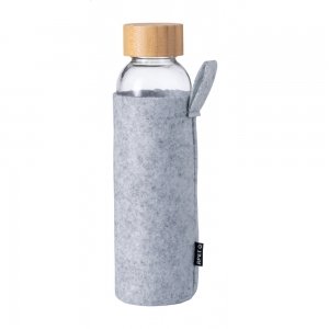 Artikel-Nr: AND733325-80Trinkflasche aus Glas mit Bambusdeckel und RPET-Filzbeutel. Füllmenge: 500 ml. Nicht für kohlensäurehaltige Getränke geeignet.