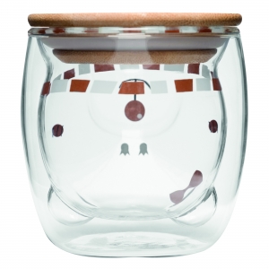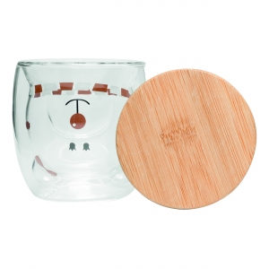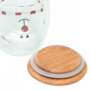 Artikel-Nr: INP56-0304509Glas XMAS BEAR, doppelwandig: Bambusdeckel mit Silikon-Dichtring, transparent, temperaturbeständig, Bärengesichtsform mit brauner Nase und Schal, Füllmenge ca. 250 ml, in Box