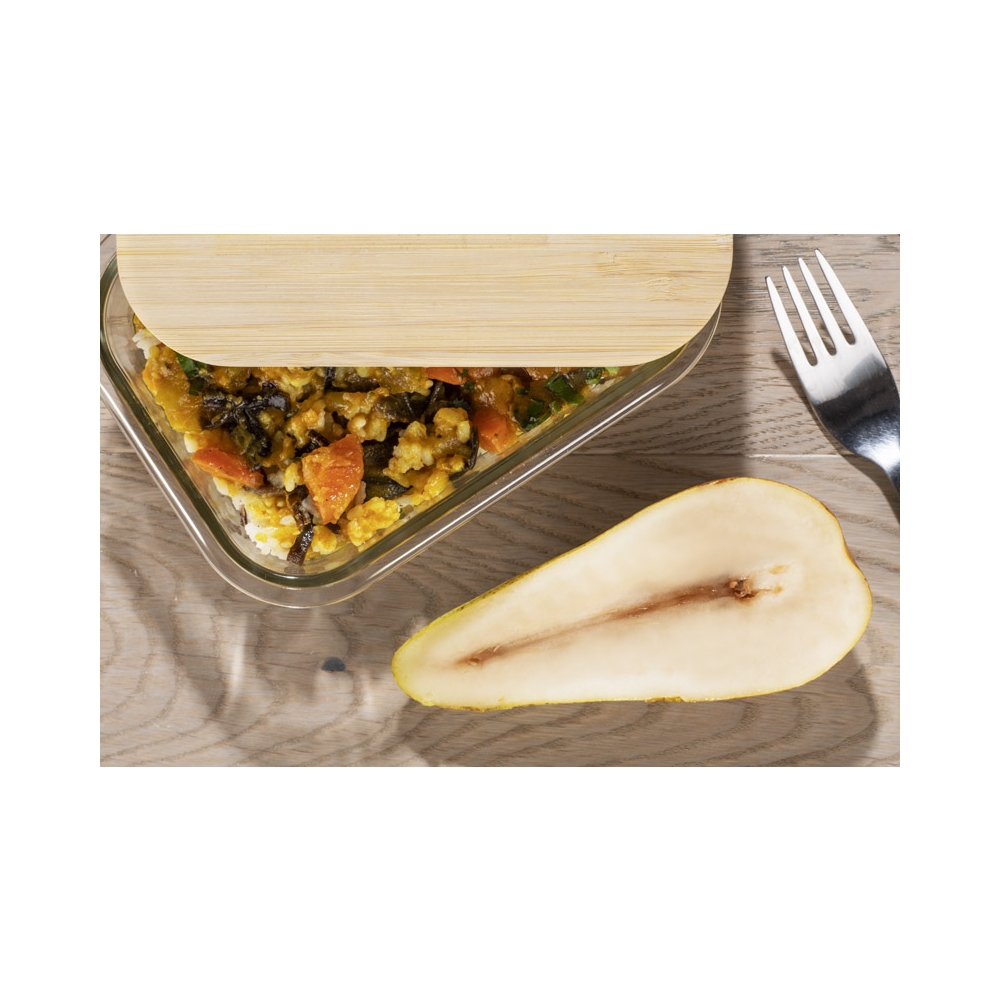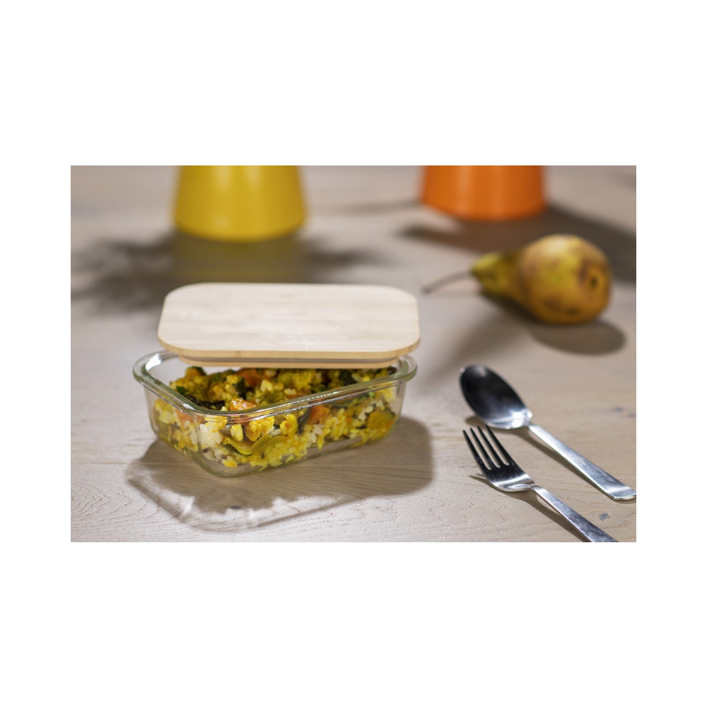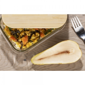 Artikel-Nr: ARD16539Der Lebensmittelbehälter ALVA ist aus hochwertigem Borosilikatglas gefertigt. Der Behälter hat einen Deckel aus natürlichem Bambus. Er kann als Lunch-Behälter, zur Aufbewahrung von Lebensmitteln und zum Erwärmen von Speisen im Ofen oder in der Mikrowelle verwendet werden. Fassungsvermögen 430 ml.
