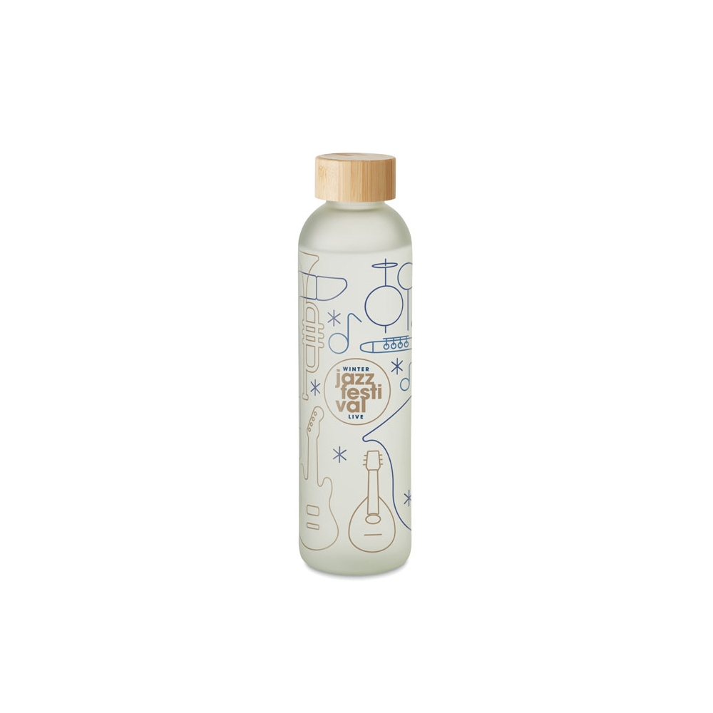 Artikel-Nr: OCBMO6921-26Glasflasche mit Verschluss aus Bambus. Spezielle Beschichtung für Sublimationsdruck. Füllmenge: 650 ml. Bambus ist ein natürliches Produkt, es kann daher zu leichten Abweichungen in Farbe, Dekor und Maßen kommen.