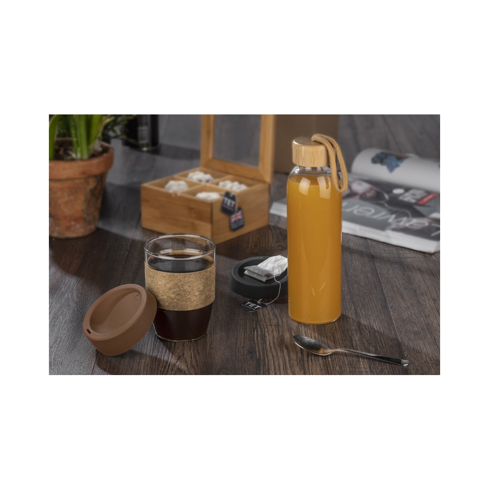Artikel-Nr: ARD16211Die 560 ml VIDO Flasche ist eine umweltfreundliche Alternative zu Plastikflaschen. Sie besteht aus Borosilikatglas, einem hochwertigen Glas, das gegen hohe Temperaturen beständig ist. Der Verschluss ist aus natürlichem Bambus gefertigt und hat eine bequeme Schnur, die als Griff funktioniert.