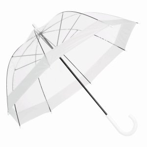 Artikel-Nr: INP56-0103392Glockenschirm HONEYMOON: Metallstock und –speichen, Kunststofftips und –spitze, Kunststoffrundhakengriff, transparente POE-Bespannung mit farbiger Bordüre, Schließband mit Druckknopf