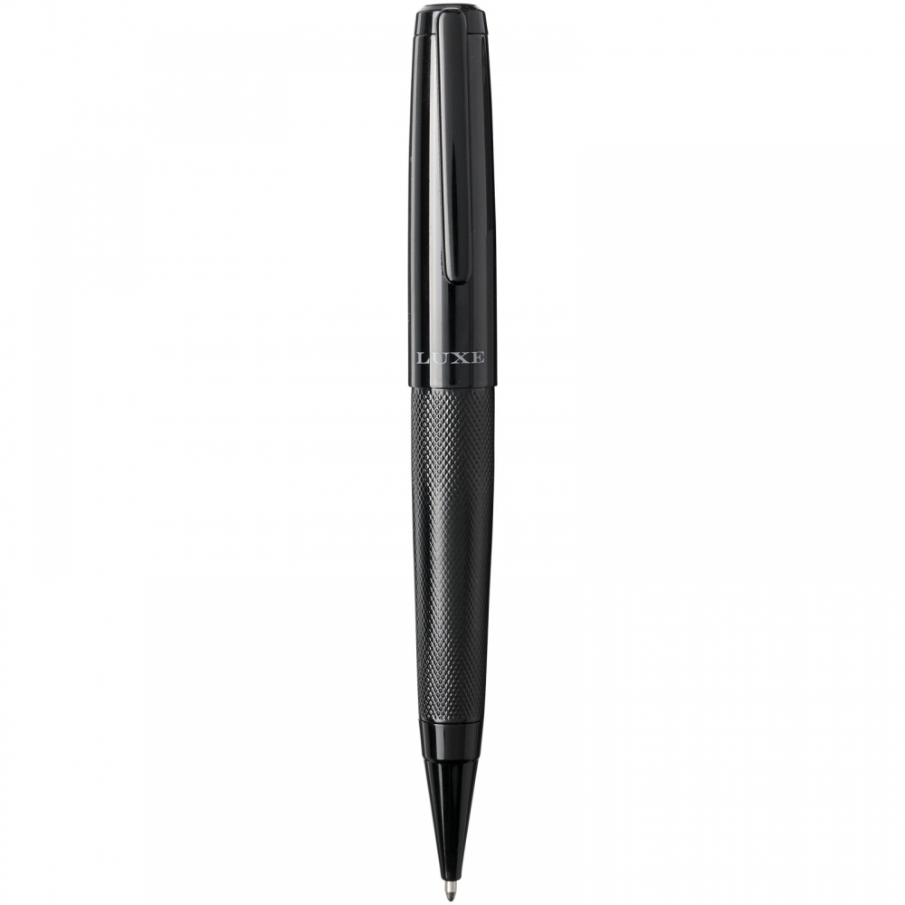 Artikel-Nr: CPO10724800Kugelschreiber- und Tintenroller-Präsentset mit einem schwarzen oberen und unteren Schaft in glänzender Ausführung, geliefert in einer Luxe-Präsentbox. Kugelschreiber: 14 x 1,45 cm, Gewicht: 40 g, Schreiblänge: 800 m. Durchmesser des Tintenrollers: 13,8 x 1,45 cm, Gewicht: 54 g, Schreiblänge: 400 m.