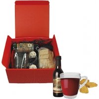 Inhalt: Geschenkkarton mit 0, 25 l Glühwein, 1 Teeglas, 100 g Butterspekulatius und 2 Rattan-Kugeln.