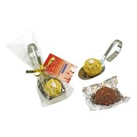 Inhalt: Tütchen mit einem Edelstahl-Häppchenlöffel, inklusive 1 Rocher-Praline und einem Anhängekärtchen.