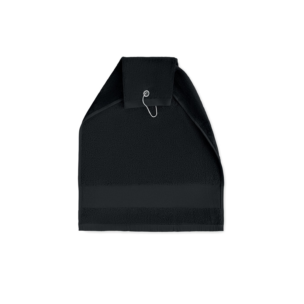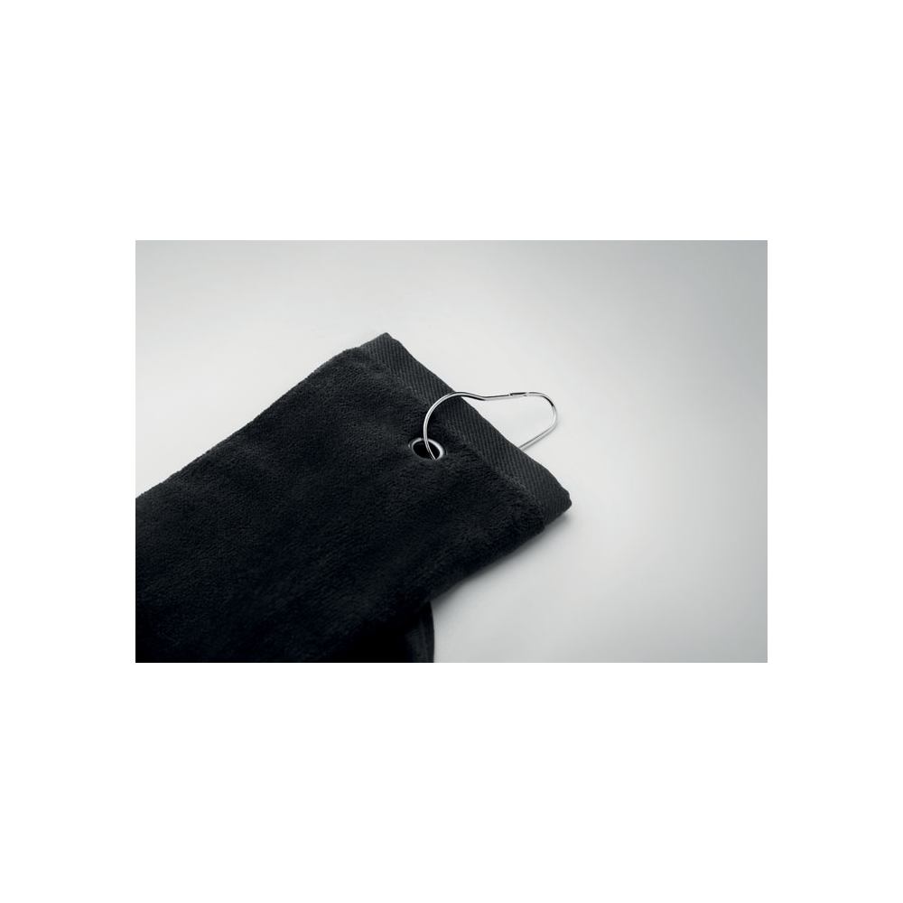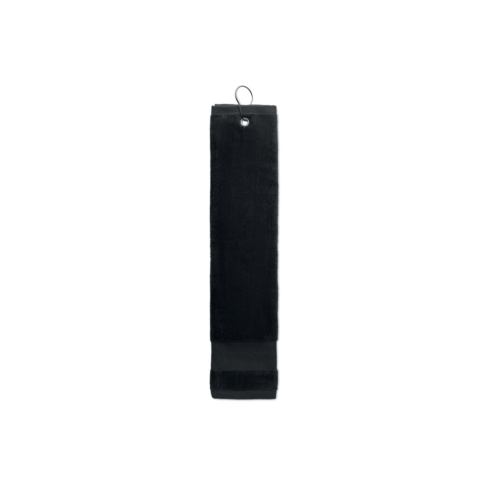 Artikel-Nr: OCBMO6525-03Golfhandtuch aus Baumwolle 350 g / m². Mit Öse und Haken zum Befestigen an Tasche oder Ausrüstung. Maße Handtuch: 40 x 60cm.