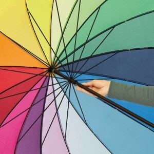 Artikel-Nr: INP56-0104053Golfschirm RAINBOW SKY: 16 Segmente, Metallstock, Metallspeichen und -tips, Holzgriff, Polyester-Bespannung, Schließband mit Klettverschluss