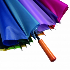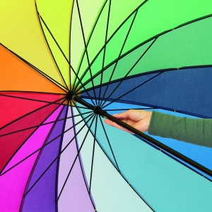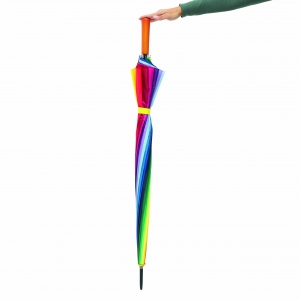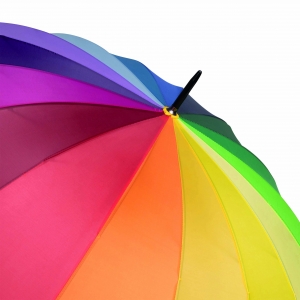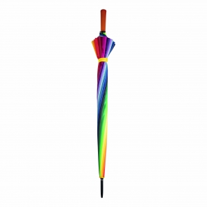 Artikel-Nr: INP56-0104053Golfschirm RAINBOW SKY: 16 Segmente, Metallstock, Metallspeichen und -tips, Holzgriff, Polyester-Bespannung, Schließband mit Klettverschluss