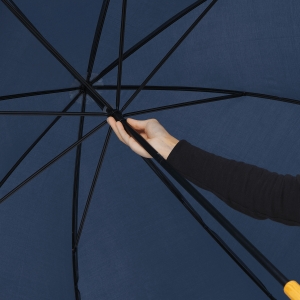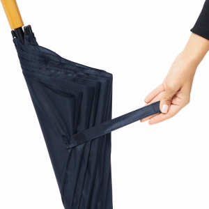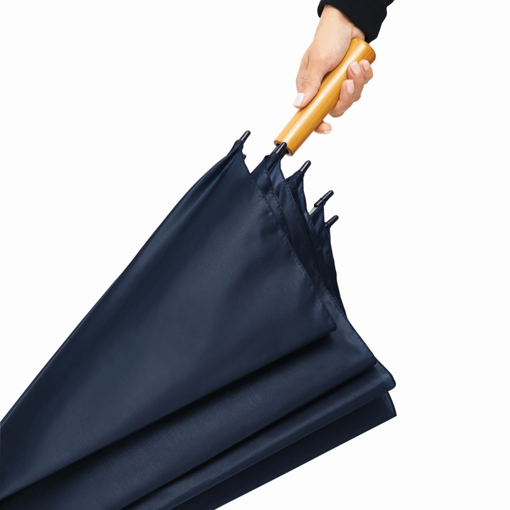 Artikel-Nr: INP56-0104225Golfschirm RAINDROPS: Metallstock und Doppelmetallspeichen, Kunststofftipps, Griff in Holz-Optik, Polyester-Bespannung, Schließband mit Klettverschluss