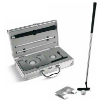 Golfset im Aluminium-Koffer. Abmessung: 31x17x7,5 cm. Druckgröße: 70x30 mm. Erhältlich in den abgebildeten Farben.