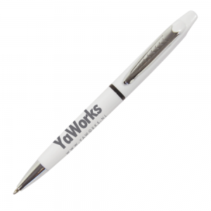 Artikel-Nr: PRM124005_15GOZO Plastik-Kugelschreiber Peekay in weiß mit Clip, Spitze aus Metall und blau schreibende Mine. Drücker und Ring lieferbar in mehreren Farben.