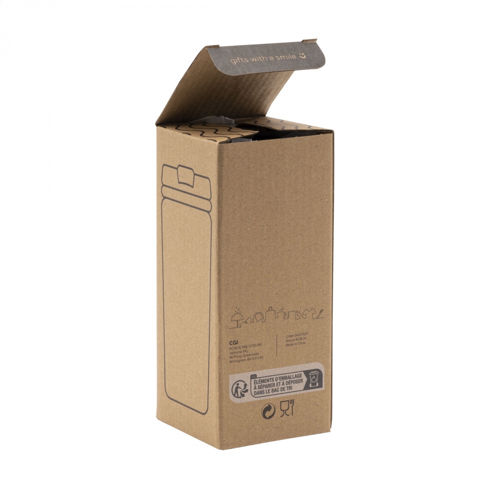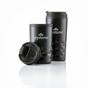 Artikel-Nr: CLP463898Doppelwandiger, auslaufsicherer Edelstahl-Thermobecher mit Schraubdeckel und Klicköffnung. PP-Innenwand. Mit auffallendem geometrischem 3D-Rautenmuster im Halter. Rutschfester Boden. Tropfsicher. Nicht spülmaschinengeeignet. Fassungsvermögen 300 ml. Wird einzeln in einem Kraftkarton geliefert.