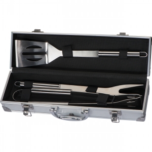 Artikel-Nr: MCM8064807Grillkoffer aus Metall, verschließbar mit Tragegriff. Der Koffer beinhaltet einen Fleischwender, eine Grillgabel, sowie eine Grillzange. Die Werbung wird außen auf die Metallplatte gelasert.