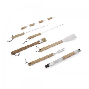 Artikel-Nr: ARD16607Das Grillset RIVA im Polyesteretui enthält 10 Teile mit Holzgriffen: 2 Spieße, Zange, Spatel, Gabel und 4 Maiskolbenhalter.