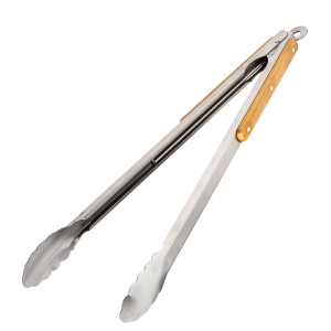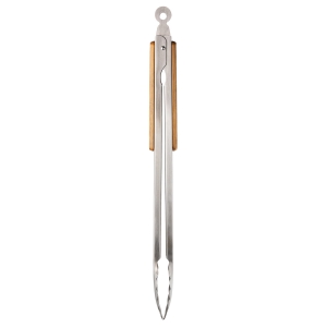 Artikel-Nr: RFS52487Diese Grillzange ist der unverzichtbare Helfer am Grill. Durch ihre Länge von 51 cm hat man als Grillmeister den idealen Abstand zum heißen Grill und kann Fleisch oder Gemüse sicher wenden und servieren. Die leicht gebogenen Enden der Zange sorgen dafür, dass das Grillgut sicher gegriffen werden kann. Die BBQ-Zange verfügt über eine praktische Arretierung und eine Öse zum Aufhängen. Der Griff aus schönem Bambusholz lässt sich durch eine Lasergravur besonders eindrucksvoll veredeln.